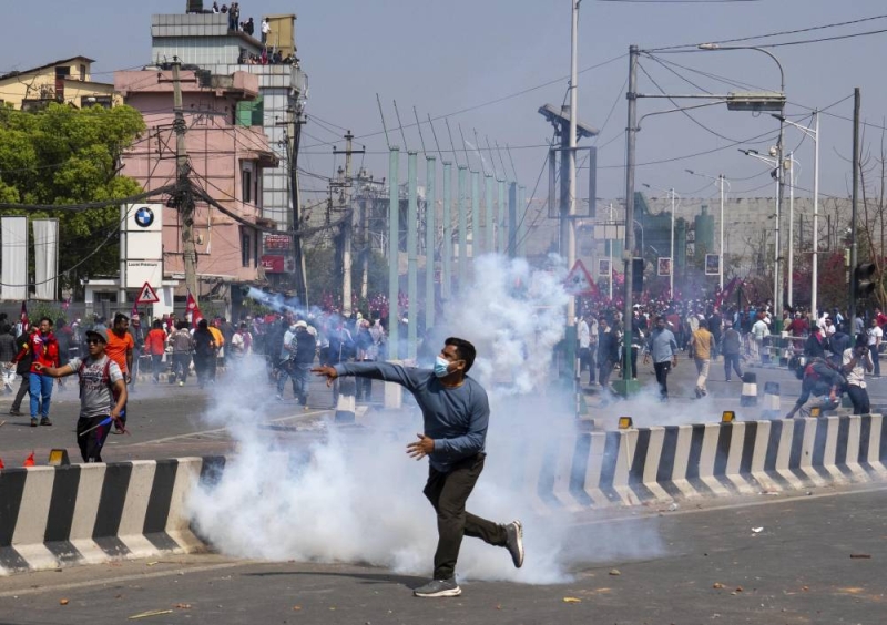 During the royalist’s protests on Friday, Kathmandu witnessed vandalism and arson in Tinkune, Koteshwor, and elsewhere. Police used force to stop a stone-throwing crowd from marching towards the parliament building in Kathmandu, resulting in the death of two people, while injuring at least 112-including 77 security officials-sustained injuries according to authorities. Protesters vandalised homes, shops, a hospital, a political party office, vehicles, and a shopping mall, stealing a weapon from police.