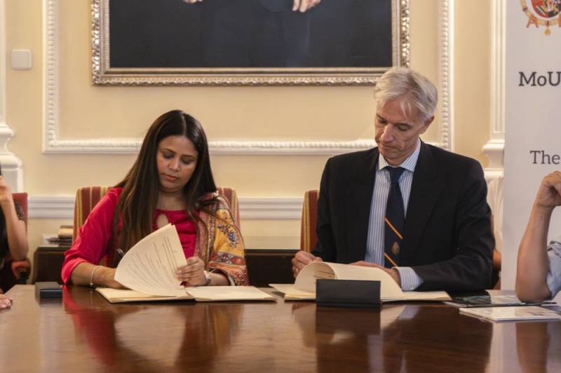 The agreement was signed by Santiago Velo de Antelo, Presidente Ejecutivo of the Academia de la Diplomacia, and Dr. Sarmila Parajuli Dhakal, President of The Diplomat Nepal by Ambassadors Club and Former Ambassador of Nepal to Spain and Oman.